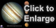 By far the largest of the Solar System planets, Jupiter is in fact 2.5 times more massive than all of the other Solar System planets combined. Named after the chief god in Roman mythology it is the undisputed senior member of the planetary family. A line of 11 Earths would be needed to equal Jupiter's equatorial width and it would take 1,318 Earths to fill its great volume. It has an equatorial diameter of 142,985 km and a polar diameter of 133,718 km giving it a distinctly flattened appearance. This oblateness is caused by its rather swift rotational period which is 9 hours 50 minutes and 30 seconds at the equator and 9 hours 55 minutes and 41 seconds at higher latitudes. This difference in rotation rate is possible because the planet is made up largely of gas. A small telescope brings into view some of the details of Jupiter's disk, dark belts of cloud parallel to the equator and an eye-shaped marking in the southern hemisphere known as the Great Red Spot which was first observed in 1665. This feature is an anticyclone 14,000 km wide and 40,000 km long, large enough to swallow three Earths. The spot however is not always red: most often it is pinkish and can sometimes fade to a light grey. The face of Jupiter never looks the same twice adding to the intrigue of this giant world. The key to Jupiter's weather is the fact that it gives off twice as much heat as it receives from the Sun. The planet was hot when it formed and still retains some of that heat today. This internal store of heat drives the complex cloud systems of the planet, keeping the Great Red Spot and its smaller relatives alive far longer than any storms on Earth with massive flashes of lightning being recorded on Jupiter's night side by the Voyager space craft. The winds in the upper atmosphere have been recorded at over 640 km/hour.